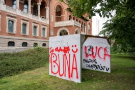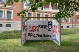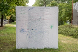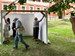 Installation view of the walls on the National Museum of the Romanian Peasant site